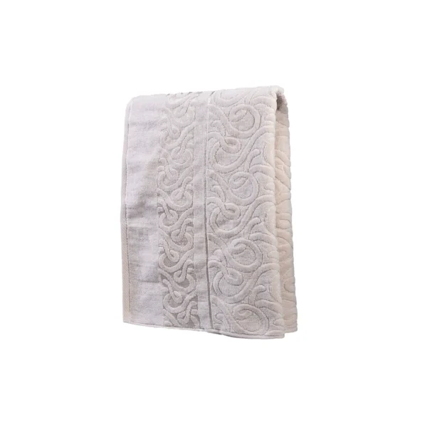 بارزترین ویژگی این حوله، طرح پیچک آن است. نقوش ظریف و برجسته برگ‌های پیچک، با دقت و ظرافت بر روی حوله بافته شده‌اند و جلوه‌ای طبیعی و آرام به آن بخشیده‌اند. این طراحی، حسی از سرزندگی و طراوت را به شما منتقل می‌کند و فضای حمام شما را دلپذیرتر می‌سازد. طرح پیچک، نمادی از پایداری و زیبایی است که هیچ‌گاه از مد نمی‌افتد و به راحتی با هر سبک دکوراسیون، از کلاسیک تا مدرن، هماهنگ می‌شود.