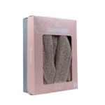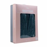 الگوی طراحی مدل «برگ» برگرفته از خطوط نرم و طبیعی برگ درختان است که حس تازگی، تمیزی و لطافت را به صورت بصری القا میکند. این طرح نه تنها جلوهٔ خاصی به حوله میبخشد بلکه با بافت برجستهٔ خود باعث افزایش جذب رطوبت در نقاط تماس با پوست میشود. این طراحی هوشمندانه، هم کاربردی است و هم زیبا.