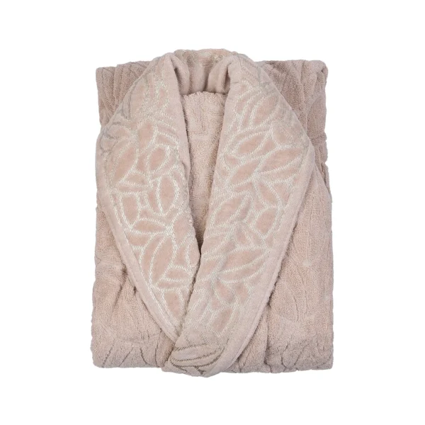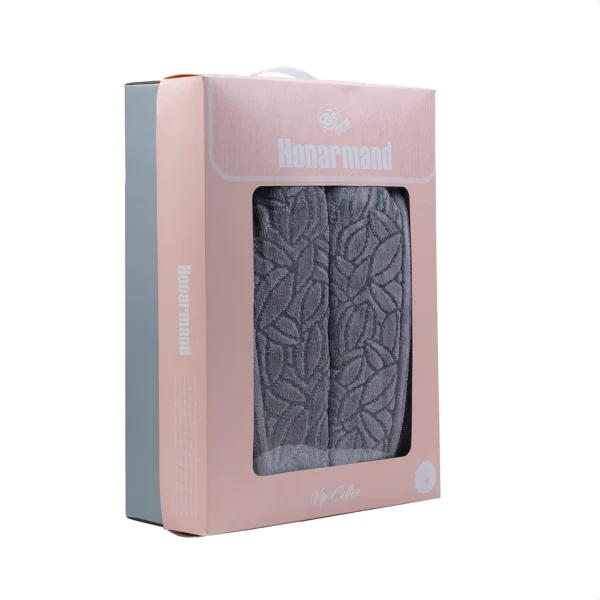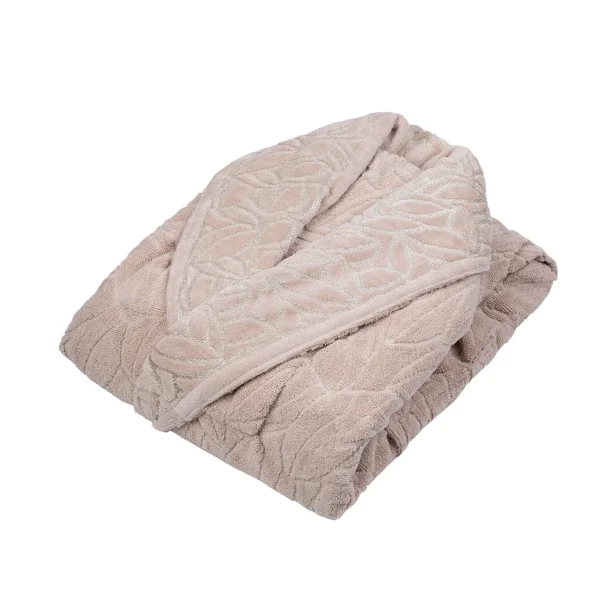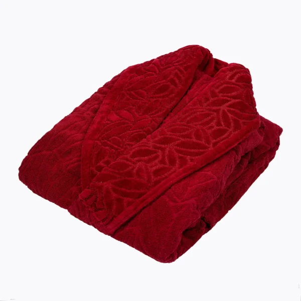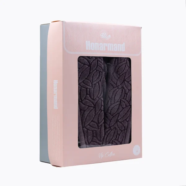 الگوی طراحی مدل «برگ» برگرفته از خطوط نرم و طبیعی برگ درختان است که حس تازگی، تمیزی و لطافت را به صورت بصری القا میکند. این طرح نه تنها جلوهٔ خاصی به حوله میبخشد بلکه با بافت برجستهٔ خود باعث افزایش جذب رطوبت در نقاط تماس با پوست میشود. این طراحی هوشمندانه، هم کاربردی است و هم زیبا.